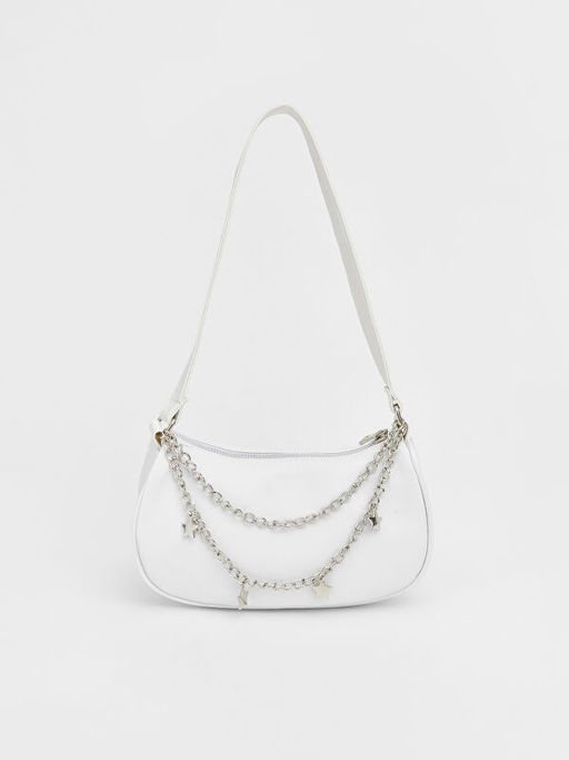 Deri G?r?n?ml? Zincir Detayl? K?z ?ocuk Omuz ?antas?