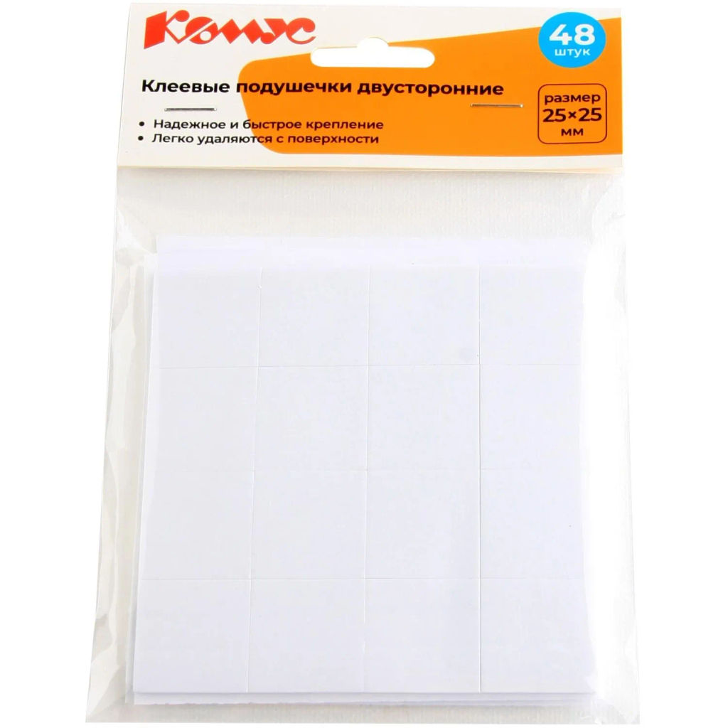Клеевые подушечки КОМУС двусторонние 25х25х2 мм, вспененная основа, 48шт/уп