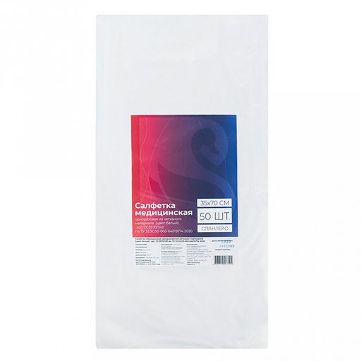 Полотенце одноразовое 35х70см, белое, спанлейс (нетканый материал) 40мкм, индивидуальное сложение, ТУ 32.50.50-005-64015714-2020, цена за упаковку 50шт (Россия)