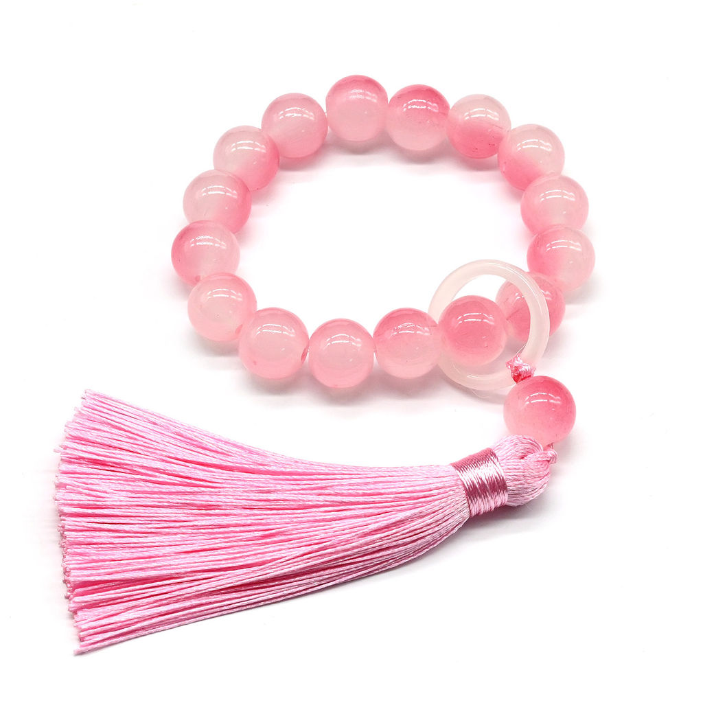 • Браслет с кисточкой шарик 12мм цв.розовый, 16 бусин
