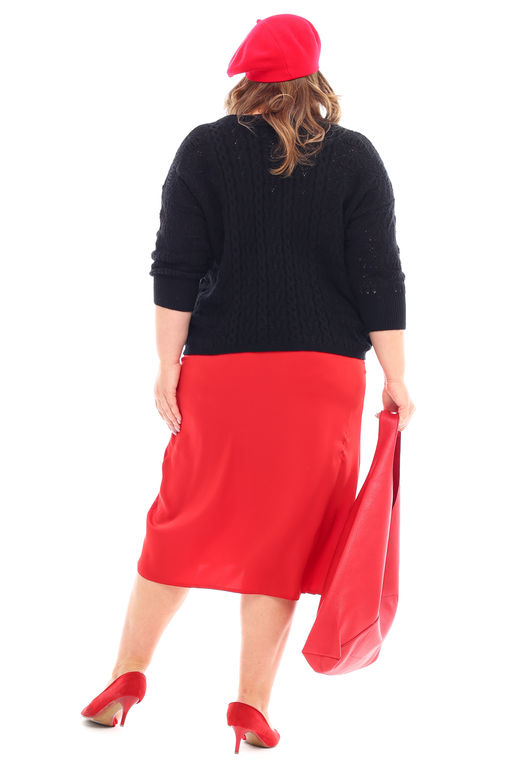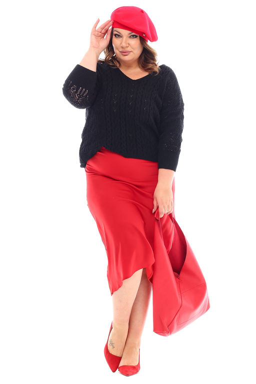 Мягкий вязанный свитер свободного кроя выполнена из мягкого трикотажа. Модель имеет V-образный вырез и приспущенные рукава полной длины. Фактурная вязка освежает образ и добавляет элегантности. Свободный силуэт искусно обыгрывает фигуру, а мягкий материал обеспечивает максимальный комфорт в течение всего дня. Однотонная классическая модель прослужит не один сезон, сохраняя свой первостепенный идеальный внешний вид. Отлично сочетается с юбками и брюками.