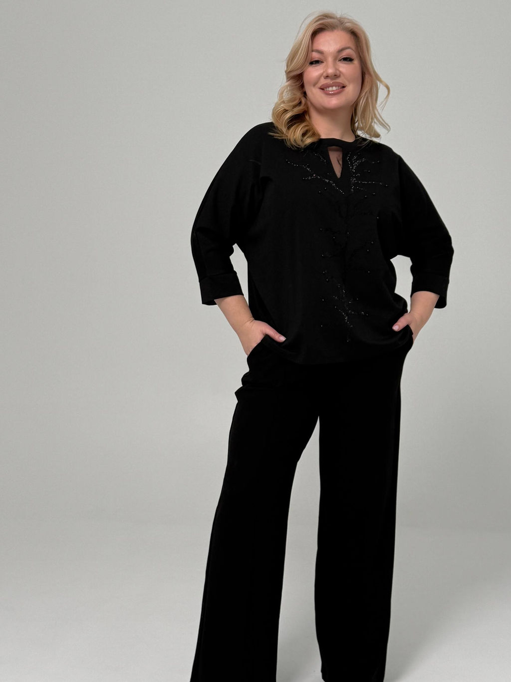 Туника с ветвистым узором черная­