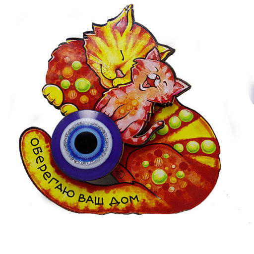 Магнит Кот с объемными глазками - привлечение благополучия и счастья в дом 9см