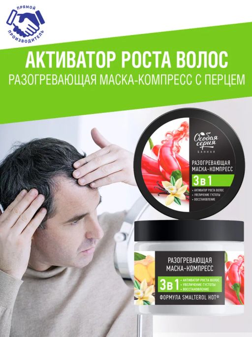Маска для роста волос с эфиром мексиканской ванили и экстрактом перца укрепляет ваши волосы и ускоряет их рост. Разогревающий эффект маски мощно активизирует кровообращение, питая активные луковицы и пробуждая луковицы спящие. Входящий в состав маски перец богат капсаицином, придающий маске разогревающее действие. Формула маски усилена специальным агентом SmalterolHot на основе эфира мексиканской ванили, который обеспечивает согревающий эффект без раздражения. Экстракт кокоса увлажняет и успокаивает поврежденные участки кожи головы. Экстракт корня имбиря оказывает антисептическое и противовоспалительное действие. Это эффективное средство для роста волос избавит вас от необходимости применять миноксидил, бустер для роста волос, дрожжи для роста волос, шампунь для роста волос и любые другие средства. Работает не хуже чем никотиновая кислота, сыворотка для роста волос. Рекомендуется как средство для роста волос мужчин, так и для женщин. Применение 2-3 раза в неделю в течение 2-3 месяцев гарантирует стойкий эффект.