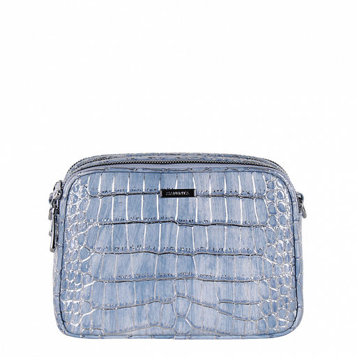 Модель кросс-боди, выполнена из экокожи. Дополнена  серебристой фурнитурой. Данная модель закрывается на молнию. Каркас полужесткий. Носится на плече. В комплекте имеется съемный ремень с регулировкой длины.
