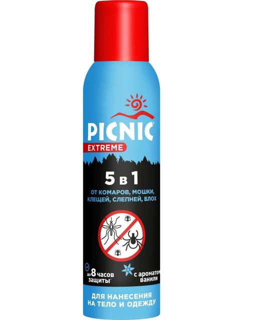 PICNIC EXTREME аэрозоль 5в1 от комаров, мошки, клещей, слепней, блох 150мл