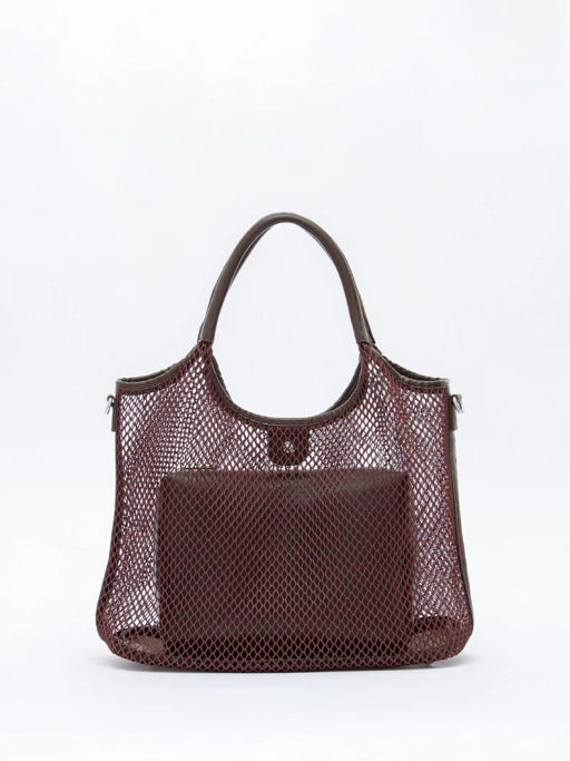 Стильная сумка-сетка, выполнена из экокожи. Дополнена серебристой фурнитурой. Данная модель закрывается на кнопку, носится в руке за встроенные ручки или на плече. В комплекте имеется ремень с регулировкой длины.