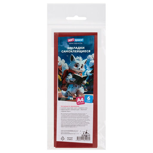 • Цена за 2 шт. Закладки-ляссе самокл. ArtSpace, карминово-красные, 6шт. 12*370мм (378003) для формата А4