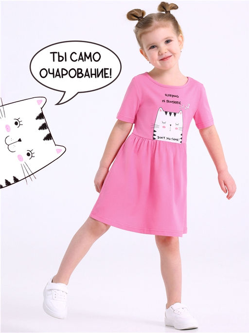 платье,хлопок 100%,кулир / хлопок 100%,розовый268 / - / Полосатый котик / - / - / -,Платье для девочки выполнено из кулира - легкого хлопкового полотна. Изделие с короткими рукавами, юбочка присборена по линии талии, полочка украшена печатью. Уход: только машинная стирка (руками не стирать!) при температуре 40 градусов, без предварительного замачивания. Изделия с печатью и декором перед стиркой необходимо вывернуть на изнаночную сторону.
