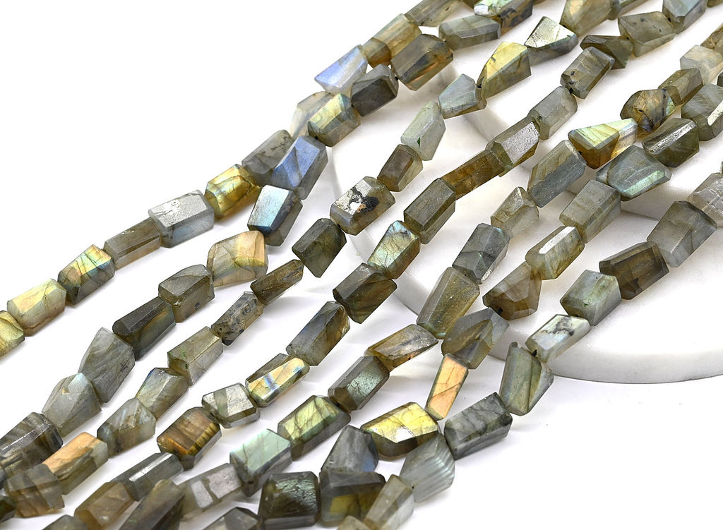 Бусины из натурального камня лабрадор в форме галтовки с огранкой.