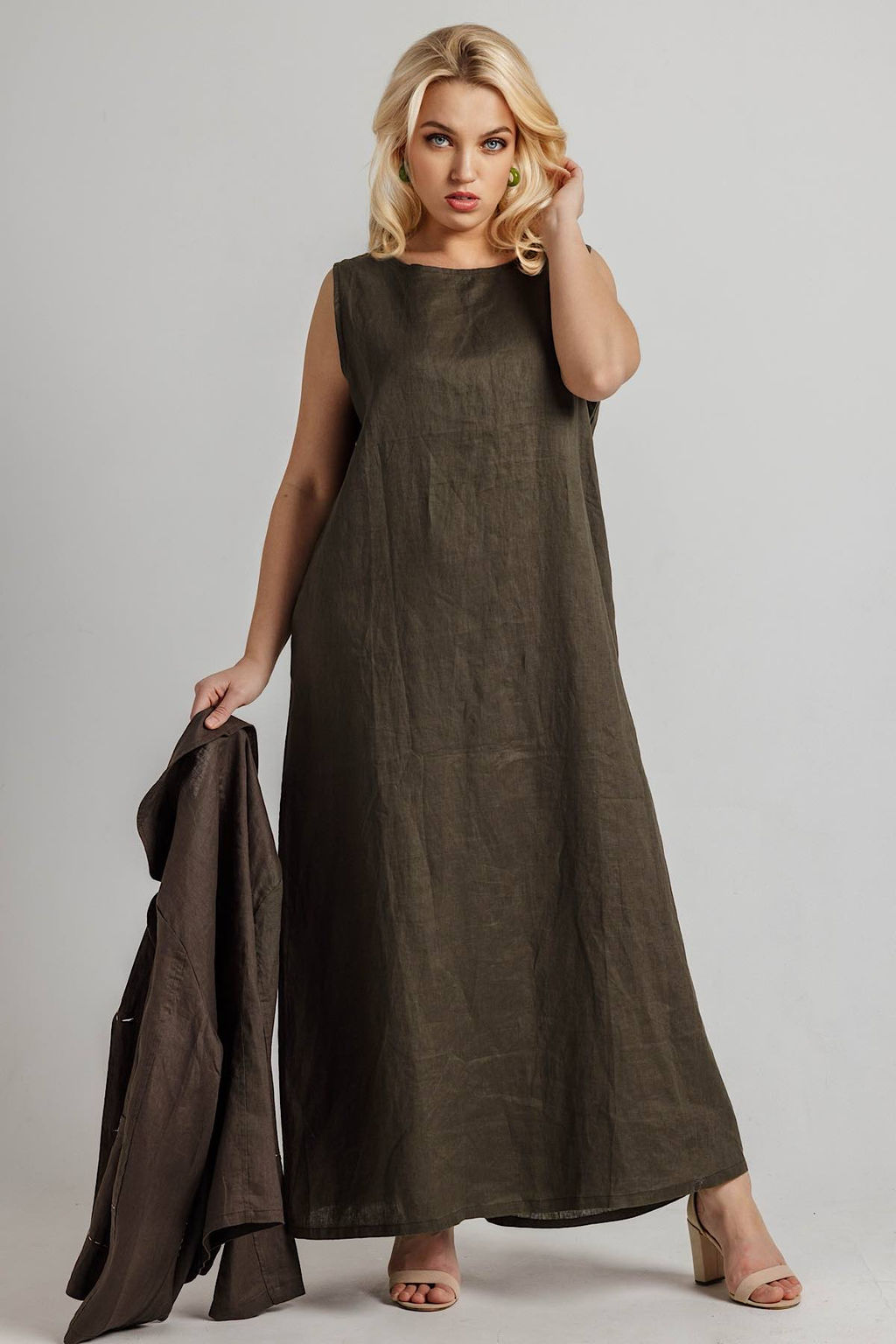 Летнее женское платье из 100% льна. Женское платье   идеальный выбор для  женщин, стремящихся подчеркнуть свою элегантность и стиль в любой ситуации. Это платье прекрасно подходит как для повседневных образов, так и для более торжественных мероприятий: вечеринок, праздников и офисных встреч. Свободный крой не стесняет движений, обеспечивая комфорт на протяжении всего дня.Модель платья- А силуэт, что делает изделие универсальным.­