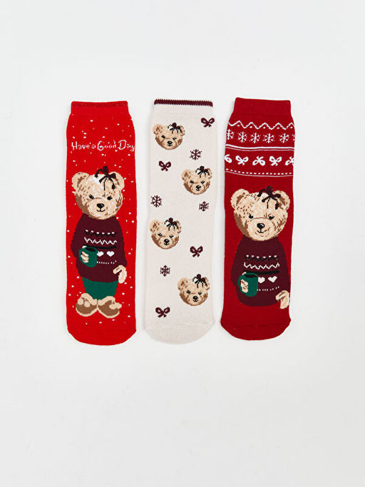Kayd?rmaz Tabanl? Ay? Teddy Desenli K?z ?ocuk Havlu Soket ?orap 3l?
