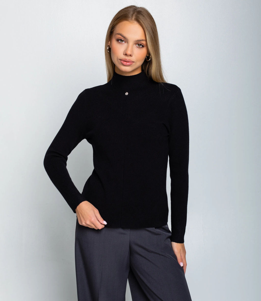 Водолазка это часть гардероба, которая подчёркивает женственность и утончённость каждой покупательницы. Модель выполнена из гладкого трикотажного материала с тонкой и плотной фактурой; облегающий силуэт, классический высокий воротник и длинные приталенные рукава создают лаконичный и универсальный образ. По центру передней части проходит едва заметный вертикальный шов, добавляющий композиционной строгости и изящества, а небольшая металлическая подвеска?улыбка со стразами придаёт изделию аккуратную стильную деталь. Водолазка отлично вписывается в базовый гардероб и легко комбинируется с брюками и юбками, а также служит идеальным слоем в многослойных образах. Для пошива использована ткань 65% хлопок, 30% полиэстер, 5% эластан: хлопок обеспечивает комфорт и хорошую воздухопроницаемость, полиэстер повышает прочность и стойкость цвета, эластан гарантирует посадку и сохранение формы после носки и стирок. Материал устойчив к частым стиркам, не деформируется и долго сохраняет презентабельный вид, что снижает количество возвратов и рекламаций. Для оптовых покупателей водолазка является выгодной и оборотистой позицией: базовый дизайн упрощает формирование размерного ряда и уменьшает риск непроданных остатков, а универсальность модели повышает её привлекательность для широкой аудитории. Рост 168, 89-63-90. -- Характеристики -- Цвет: черный Пол: Женский Страна производитель: Китай Сезон: Демисезон Материал: Хлопок, Эластан, Полиэстер