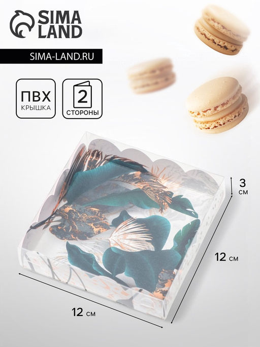 Коробка для печенья с прозрачной крышкой. Прекрасно подойдет для десертов, можно использовать для праздничного декора.Преимущества:плотный картон;сборная конструкция;удобно при транспортировке. Вид упаковки: Для макарун. Вид упаковки: Для печенья. Вид упаковки: Для конфет. Форма: Квадратная. Плотность, г/м?: 260. Длина, см: 12. Ширина, см: 12. Высота, см: 3. Тематика: Растительный орнамент. Вид упаковки: Картонная упаковка. Тематика праздника: Универсальная тематика. Вид: Кондитерские коробки. Вид: Упаковка для маффинов/макарони. Вид: Универсальные. Вид еды: Для печенья. Вид еды: Для десертов. Вид еды: Универсальный. Вид: Складные коробки. Наша разработка: Да.