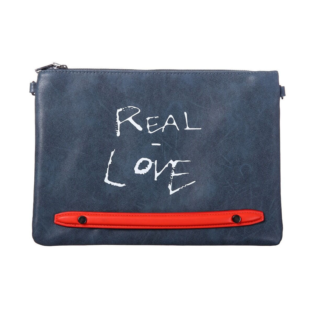 Стильный клатч-конверт из искусственной кожи модного синего цвета. Декорирован с лицевой стороны ремешком для удобной фиксации на руке. Застежка - молния. В комплекте есть длинная цепочка, которая позволяет носить клатч также и на плече. Внутри одно отделение и три небольших кармана для мелочей. Размер: 23 * 30 см