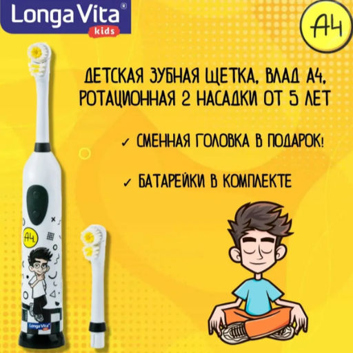 • ЛОНГА ВИТА зубн.щетка ротационная Детская Влад А4l 2-насадки от 5 лет KWX1