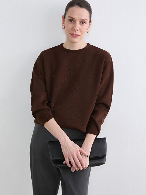 Bisiklet Yaka Baklava Desenli Kad?n Triko Kazak