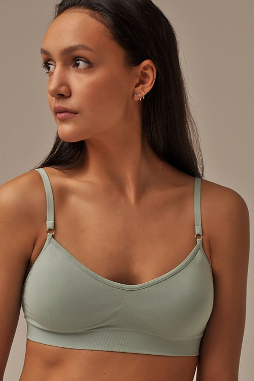 Топ на тонких регулируемых бретелях. Модель выполнена из мягкой эластичной микрофибры, со съемными чашками, при необходимости, вкладыши можно убрать. Широкая резинка по низу и удобные регулируемые бретели обеспечивают мягкую комфортную поддержку. Не вызывает раздражений и не накапливает внешние аллергены.­