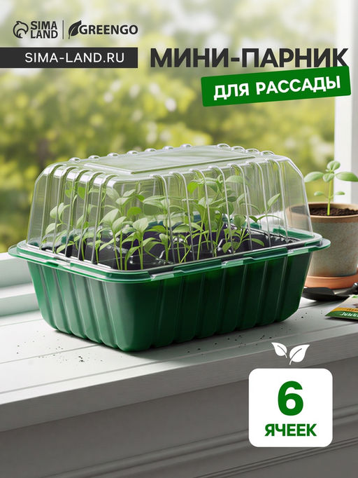 Цена за 5 шт. Мини - парник для рассады, 21.5×17×14 см, 6 ячеек, с крышкой, Greengo