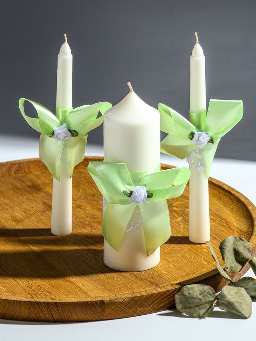 • Свечи свадебные «Пышный» набор 3 шт. (16 см и 2 шт. по 18 см), мятный