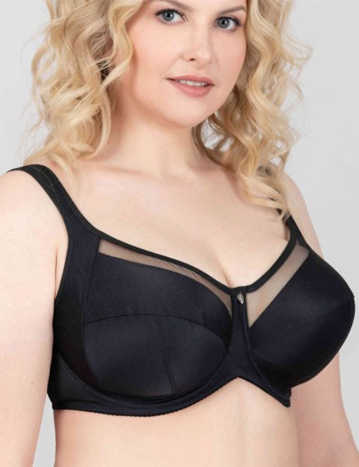 Удобный бюстгальтер без поролона Milavitsa модель 100150 / 120150 / 100152 из коллекции BASIC черного цвета предназначен для женщин с пышными формами. Мягкие вместительные чашки выполнены из эластичного и трикотажного полотна, а также украшены вставками из прозрачной сеточки. Конструкция хорошо поддерживает и формирует грудь, собирая ее с боков, а также скрывает несовершенства подмышечной области благодаря особому крою чашки.