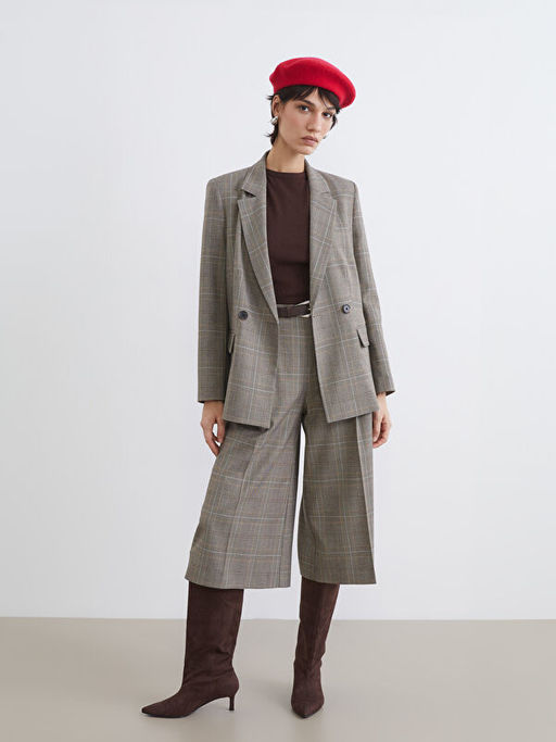 Loose Fit Ekose Geni? Pa?a Kad?n Pileli Pantolon
