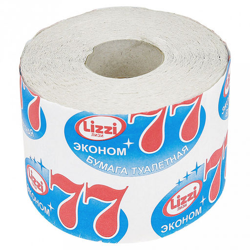 • Туалетная бумага 1-слойная "77 Эконом" 56м, сырье - серое макулатурное, плотность 28-30г/м2, с перфорацией и тиснением, LIZZi (Россия)