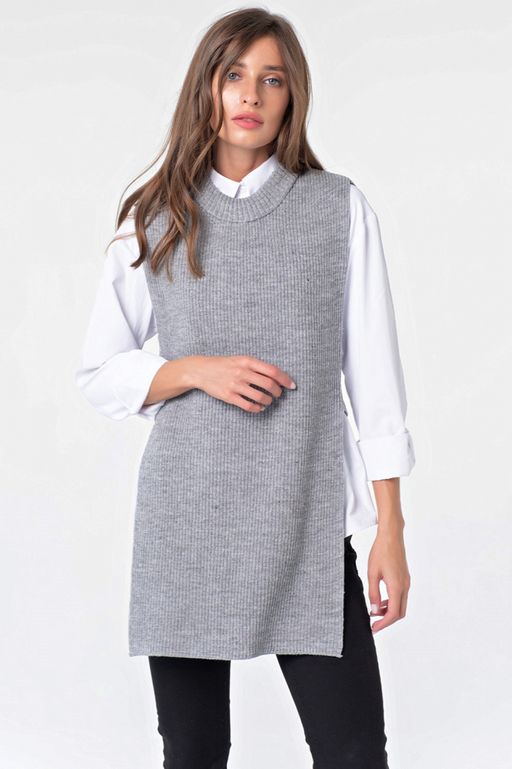 • Жилет вязаный удлиненный с разрезами по бокам из хлопка серый меланж
