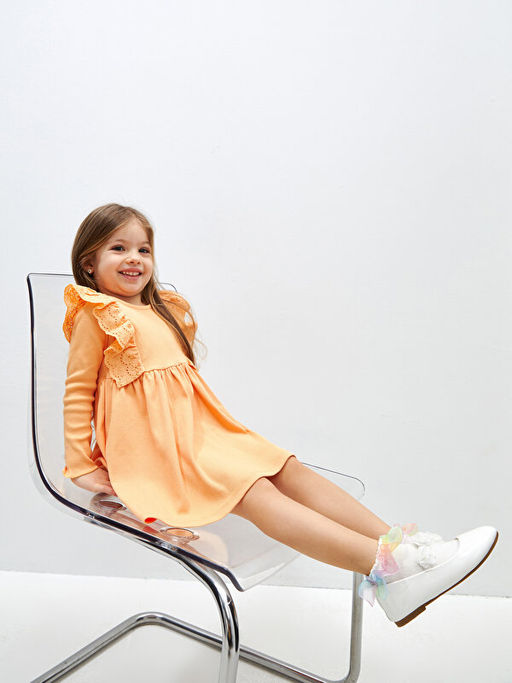 Bisiklet Yaka Uzun Kollu Basic K?z Bebek Elbise