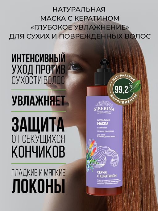 Описание товара НАТУРАЛЬНАЯ МАСКА С КЕРАТИНОМ "ГЛУБОКОЕ УВЛАЖНЕНИЕ" ДЛЯ СУХИХ И ПОВРЕЖДЕННЫХ ВОЛОС