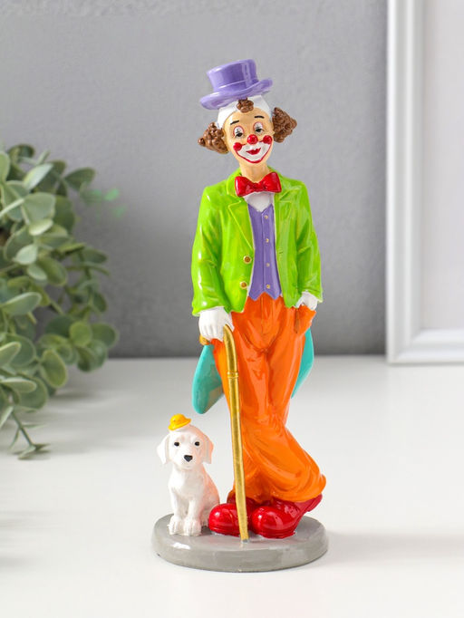 Сувенир полистоун "Клоун с тростью и пёсиком" яркий разноцветный 23 см