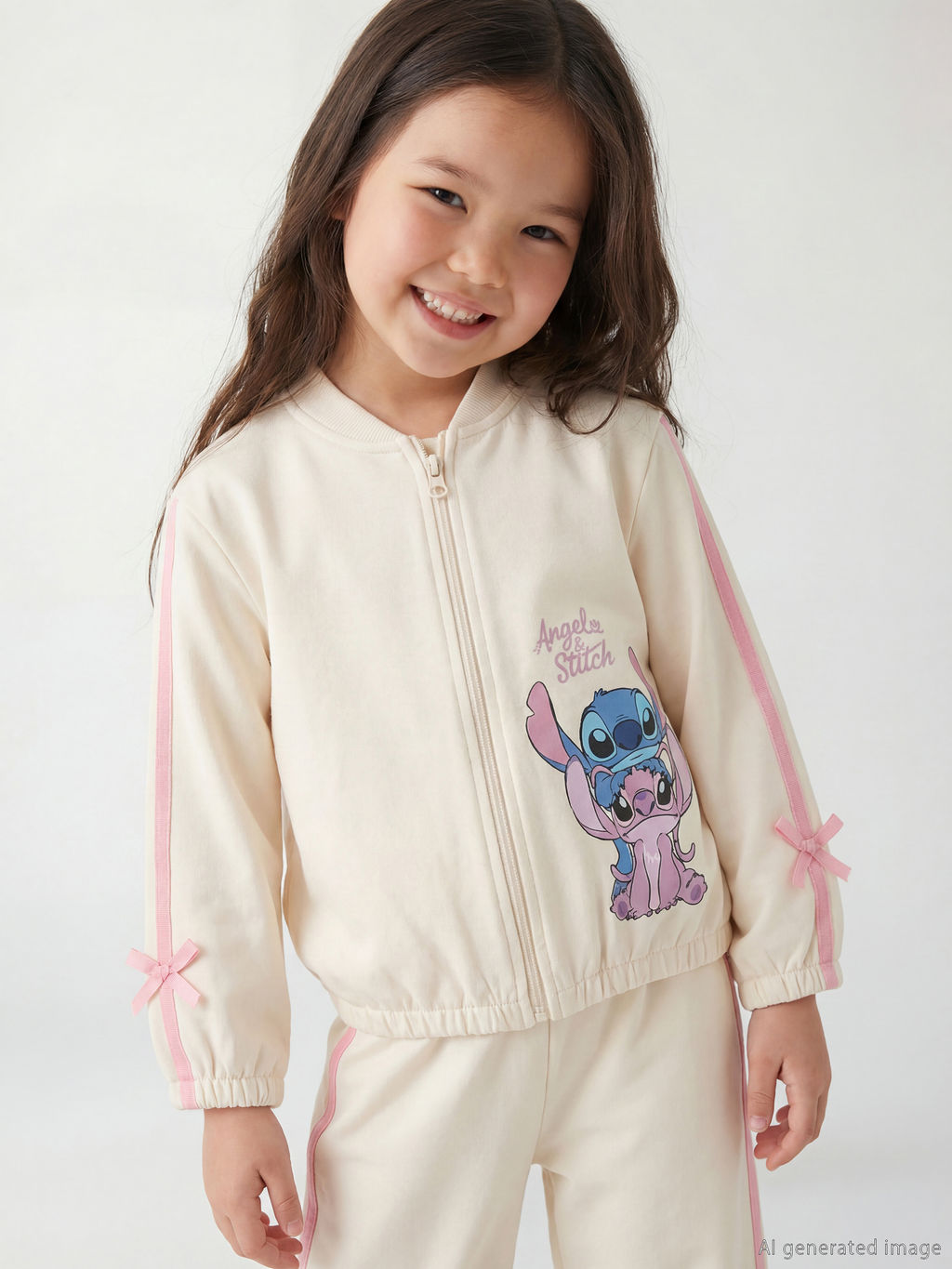 • Stitch ve Angel Bask?l? K?z ?ocuk Fermuarl? Sweatshirt