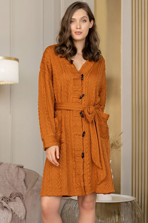 Удлиненный кардиган свободного силуэта Mia-Amore с застежкой на пуговицах, с длинными рукавами, низ которых обработан манжетами. На полочках расположены накладные карманы. Линию талии можно подчеркнуть за счет пояса, который идет в комплекте. Изделие выполнено из трикотажного полотна с фактурной вязкой.­