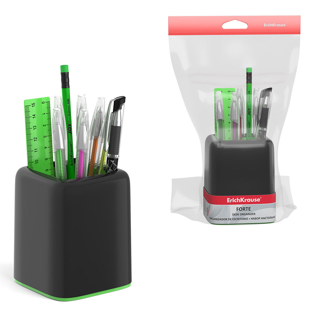 АКЦИЯ СТОК Цена за 1 шт. Набор настольный пластиковый ErichKrause® Forte, Accent, черный с зеленой вставкой
