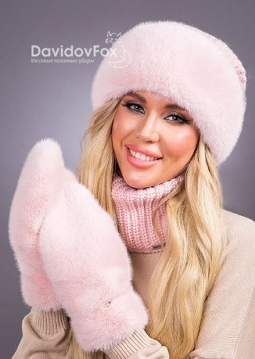 • Комплект Ника трикотаж экомех розовый жемчуг, манишка, варежки