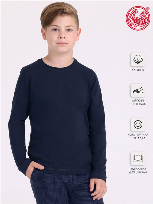 лонгслив,хлопок 92% + лайкра 8%,кулир с лайкрой / хлопок 92% + лайкра 8%,темно-синий77 / - / - / - / - / -,Стильный лонгслив для мальчика выполнен из кулира - легкого хлопкового полотна с лайкрой. Изделие с длинными рукавами. Отличный вариант для школы на каждый день! Уход: только машинная стирка (руками не стирать!) при температуре 40 градусов, без предварительного замачивания. Изделия с печатью и декором перед стиркой необходимо вывернуть на изнаночную сторону.