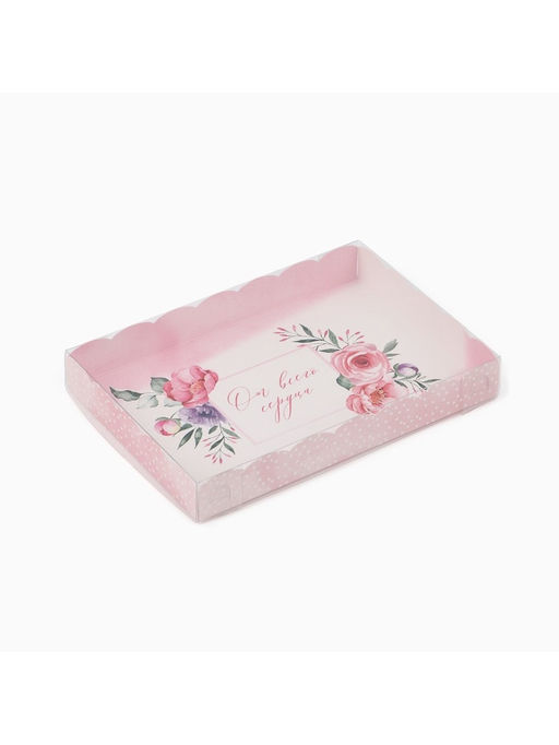 • Цена за 5 шт. Коробка для кондитерских изделий с пластиковой крышкой «От всего сердца», 22 х 15 х 3 см