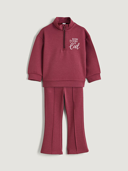 • Bask?l? K?z ?ocuk Sweatshirt ve Pantolon 2li