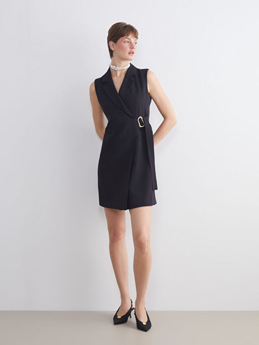 Kruvaze Yaka Metal Tokal? Mini Ceket Elbise