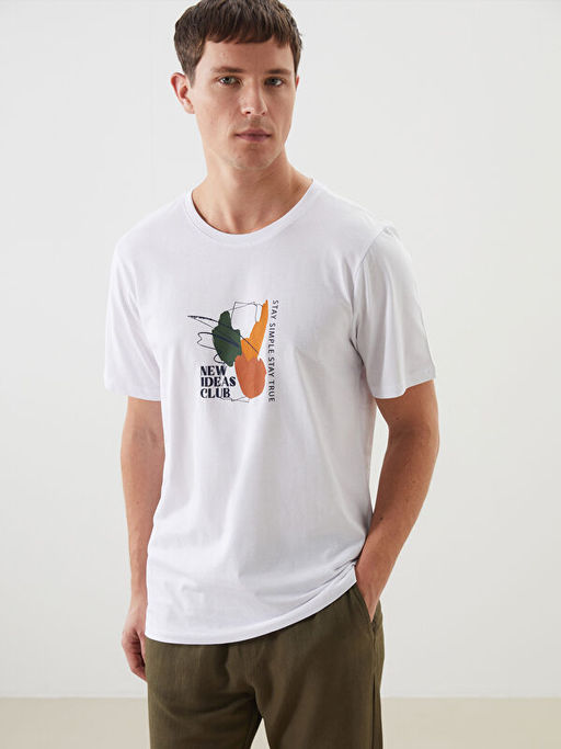 • Bisiklet Yaka Bask?l? Penye Erkek Ti??rt