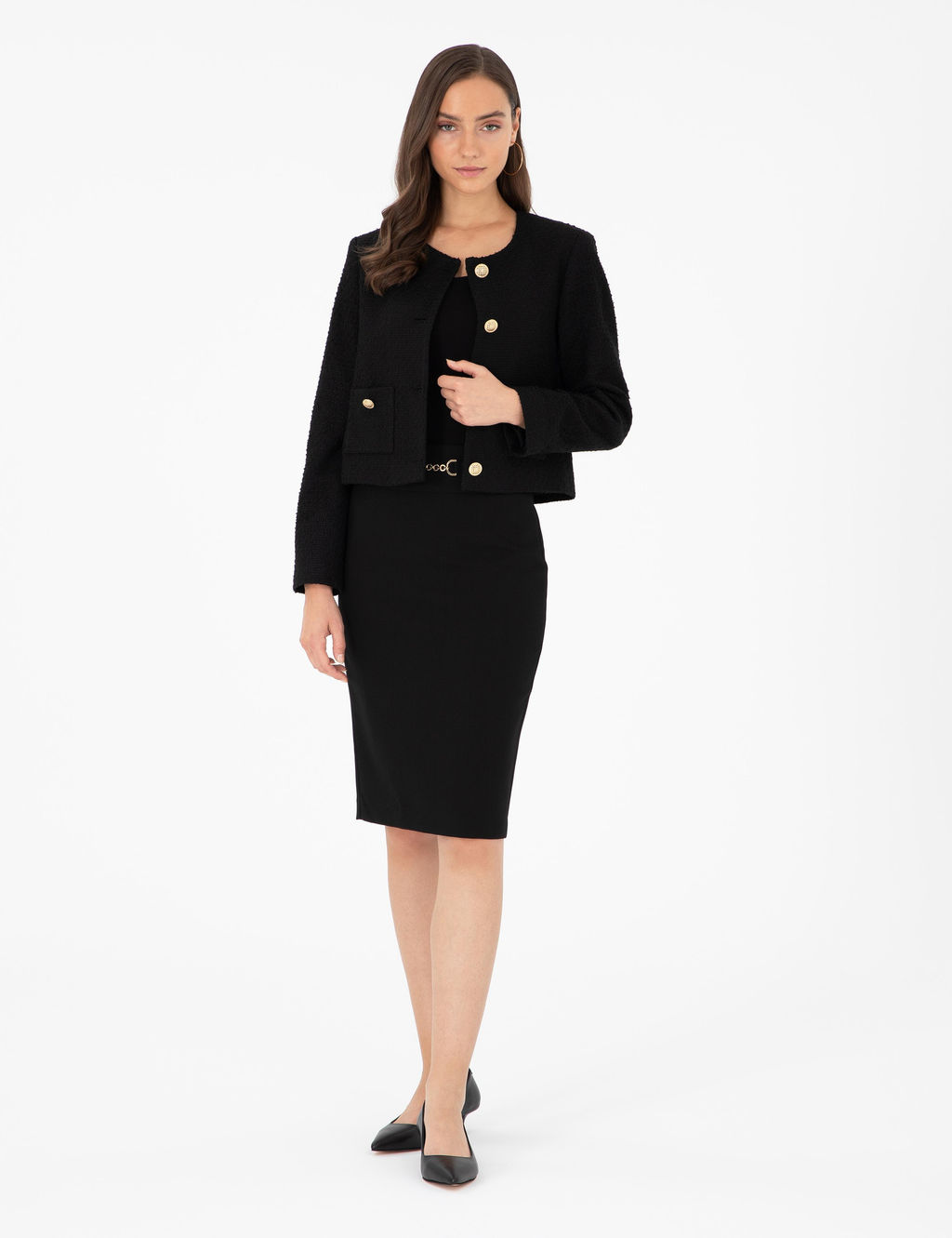 • Siyah Kalem Fit Dokuma Etek