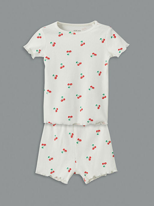 Kiraz Bask?l? K?z Bebek ?ortlu Pijama Tak?m