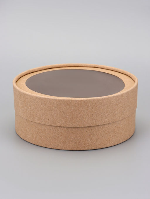 Коробка круглая подарочная, завальцованная с окном, крафт, 15×6 см