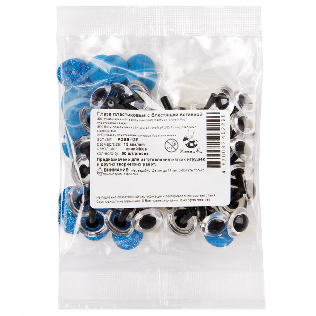 • HobbyBe PGSB-13F Глаза пластиковые с блестящей вставкой d 13 мм 50 шт. синий