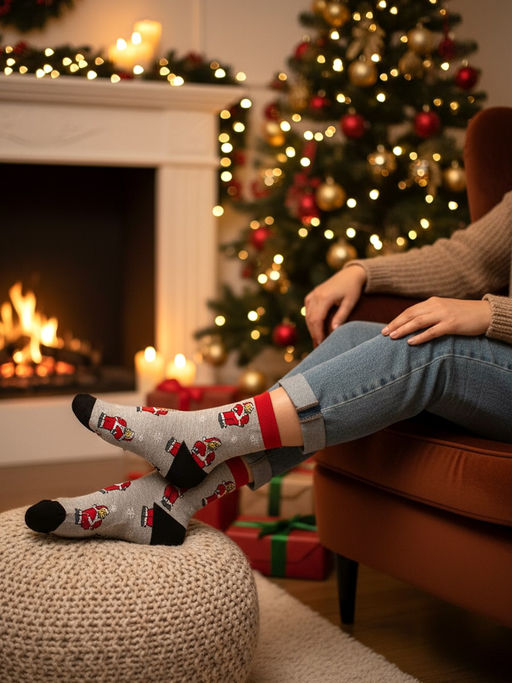 Яркие, стильные носки с новогодним принтом создадут праздничное настроение, и станут отличным подарком для ваших родных и друзей.