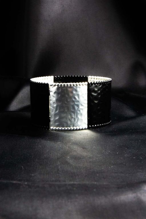 Эффектный, строгий, лаконичной фармы браслет из металла на резинке. Ширина 3,5 см.­