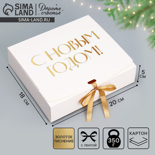 • Цена за 5 шт. Коробка подарочная новогодняя складная «С Новым годом, тиснение, белый», 20×18×5 см