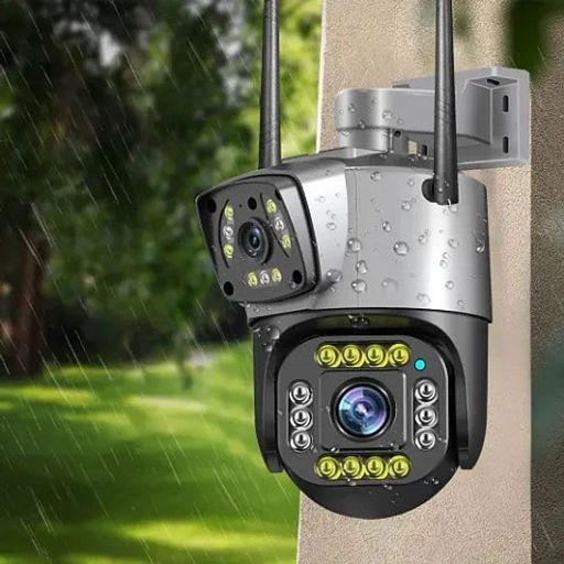 Камера видеонаблюдения с двойной камерой это устройство, которое позволяет осуществлять наблюдение и съемки в высоком разрешении с любого места, где есть сеть wifi.Эта уличная видеокамера оснащена сразу двумя модулями, которые обеспечивают широкий угол обзора и панорамное изображение. С ней не нужно устанавливать две камеры, чтобы осуществлять видеонаблюдение на большой площади. Пользователям не придется ставить две уличные камеры, чтобы записывать видео территории. У этой видеокамеры также имеется поворотный механизм, который позволяет управлять направлением камеры через телефон или компьютер. Записывать видео можно с записью звука, что полезно для съемок и регулярного наблюдения за объектом. Камера видеонаблюдения оснащена инфракрасным фильтром с подсветкой. Она также имеет датчик движения, который активирует запись и отправляет уведомление на телефон при обнаружении движущегося объекта. Камера видеонаблюдения с двойной камерой поддерживает с записью звука благодаря встроенному микрофону и динамику. Пользователи могут слышать и говорить с тем, кто находится рядом с камерой, а также использовать функцию сирены для отпугивания нежелательных гостей.