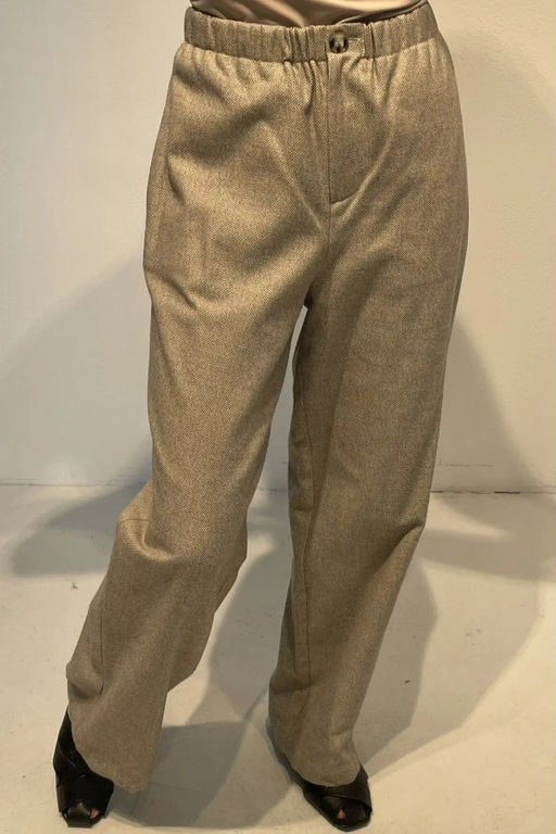 Стильные брюки из костюмной ткани. Они имеют свободный силуэт, который обеспечивает комфорт и свободу движений. В боковых швах удобно расположены карманы, а сзади накладной карман с клапаном для дополнительной функциональности. Пояс на резинке гарантирует идеальную посадку, а застёжка на молнию-гульфик делает их практичными.