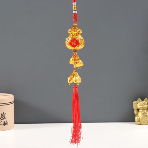 Цена за 2 шт. Подвеска пластик, текстиль "Золотые денежные мешки" 3х4,5х38 см